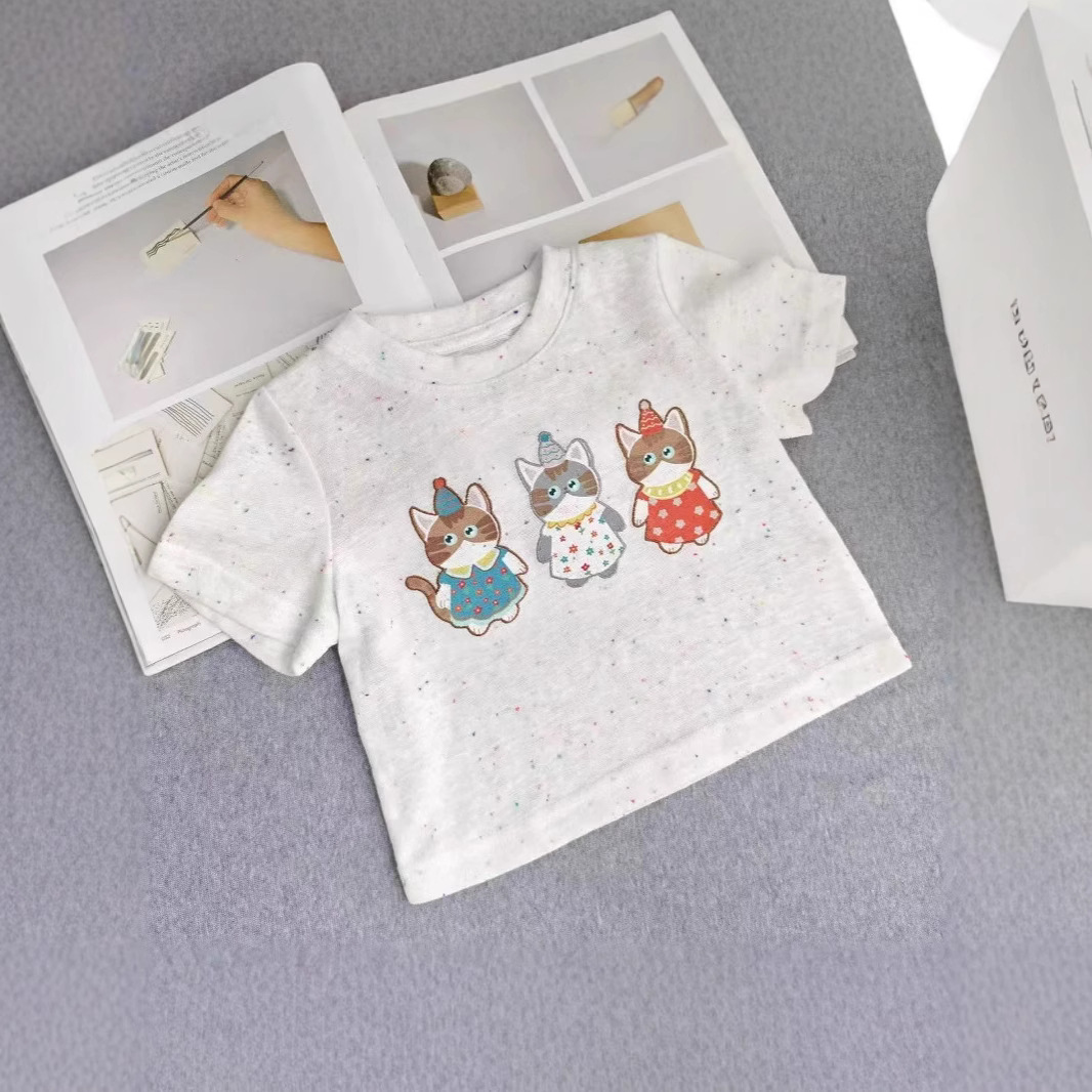 新しい 2025 夏綿かわいいカラフルなドットプリント子供の漫画綿 Tシャツ半袖