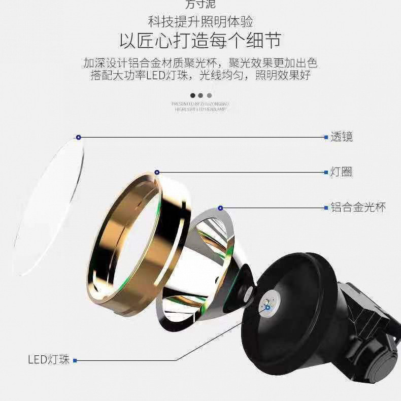 強光ヘッドライト充電可能LEDリチウム電気小ヘッドライト夜釣り屋外パトロールキャンプ頭戴式懐中電灯工場