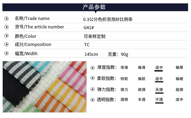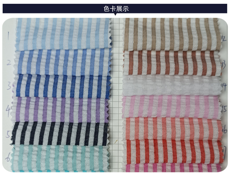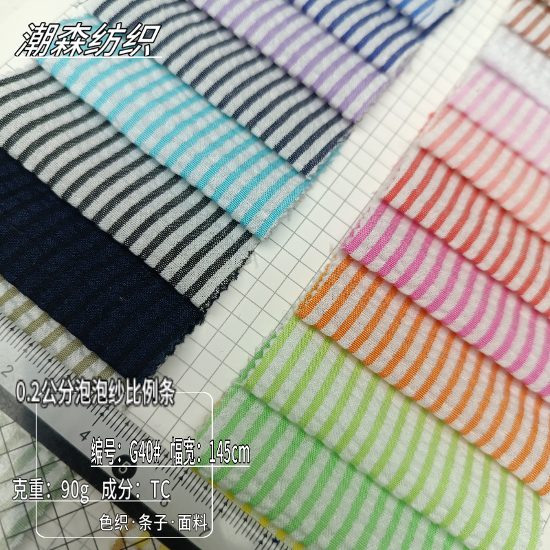泡泡纱比例条纹布料不同宽度2mm3mm6mm10mm色织全涤泡泡条子面料
