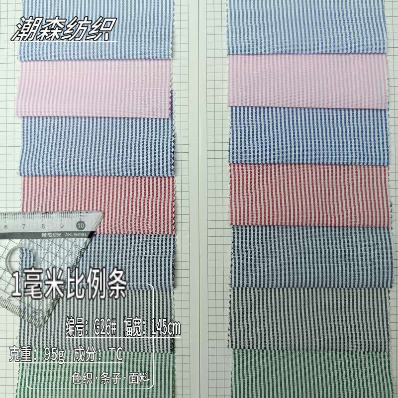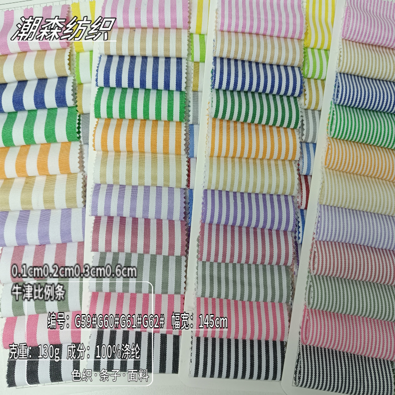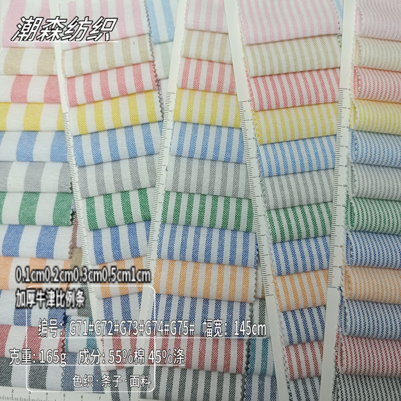 165g1mm2mm3mm5mm10mm涤棉牛津纺条子布服装衬衫裤装色织条纹面料