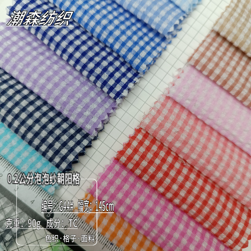 0.2センチポリエステル泡糸格子生地2mm泡朝陽格女装童装ワンピースシャツ生地