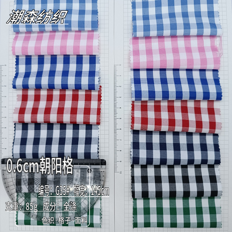 0.5cm0.6cm ポリエステル先染めチェック生地 オールポリエステル 0.5cm0.6cm 朝陽チェックシャツ生地