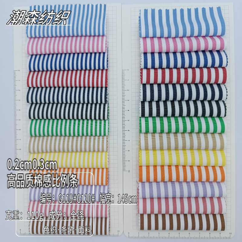 0.2cm0.3cm棉感涤纶色织条子面料全涤高品质条纹衬衣裙子布料批发