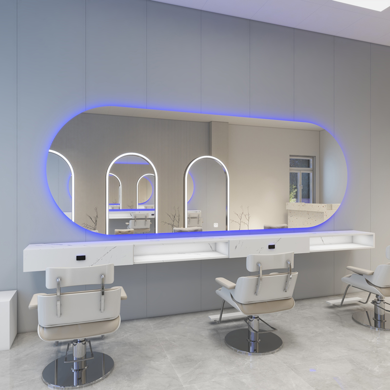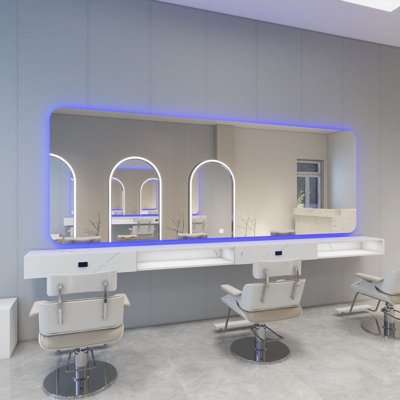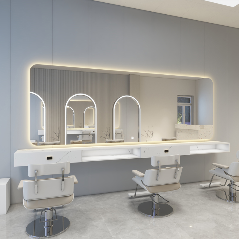 美容院の鏡の廊下の大通鏡の理髪店の鏡台のパーマを染めます。