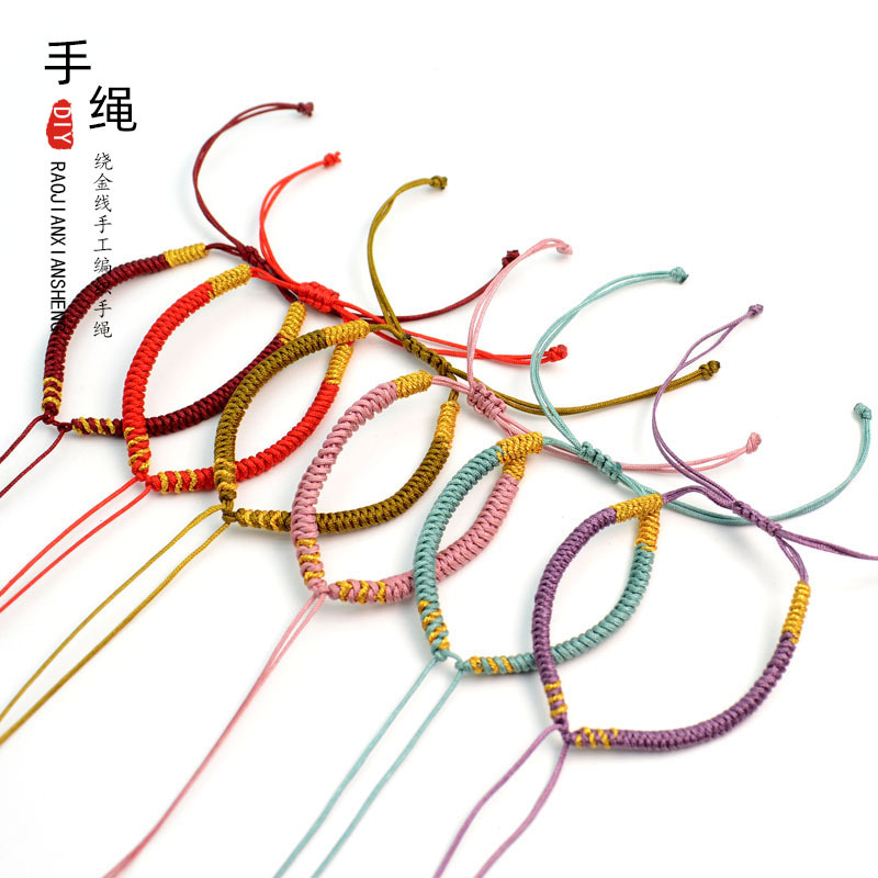 金丝编织金刚结手绳半成品简约手链 可串珠DIY平安扣饰品手牌手绳