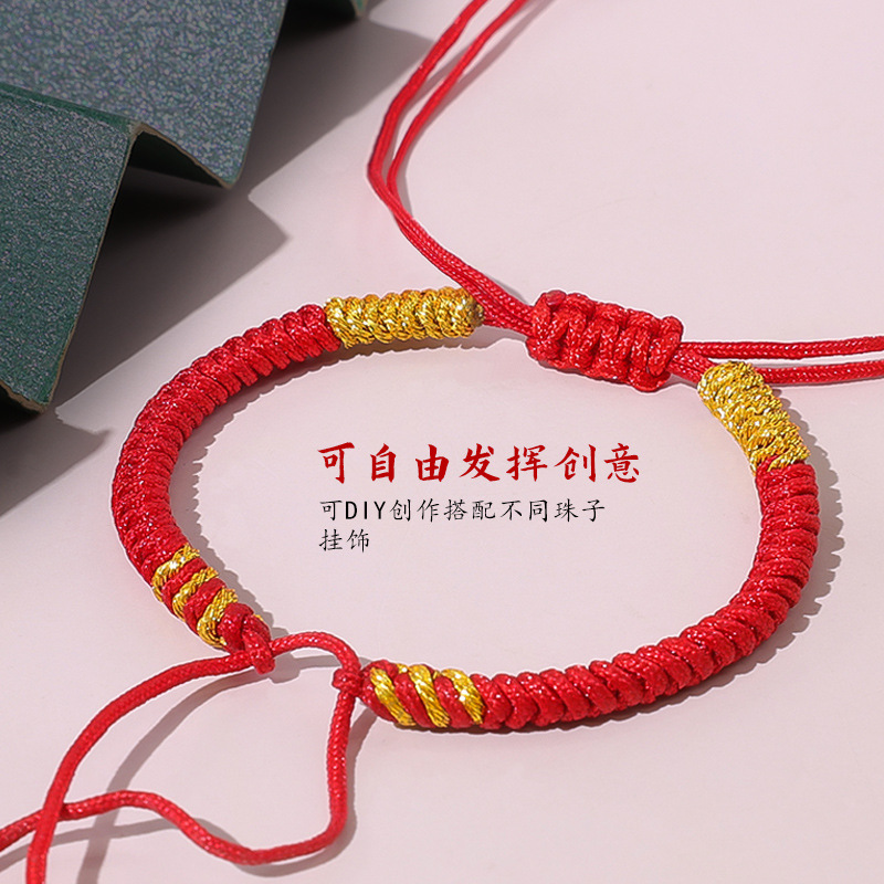 新款手工编织金线金刚结手绳半成品细款可穿转运珠红绳女情侣手链
