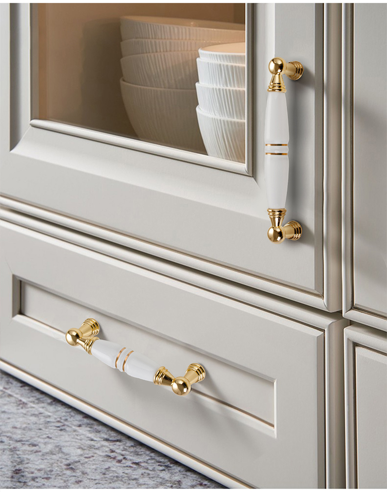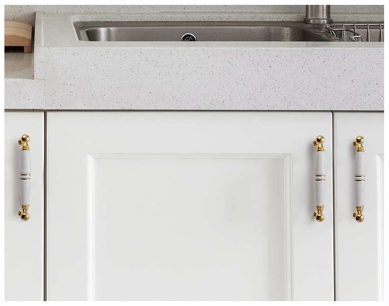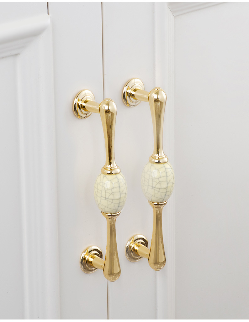 ヨーロッパ式のアメリカ式のシンプルで豪華な金色の陶磁器のタンスのドアの取っ手のフレンチクリーム風の引き出しの台所の食器棚の取っ手
