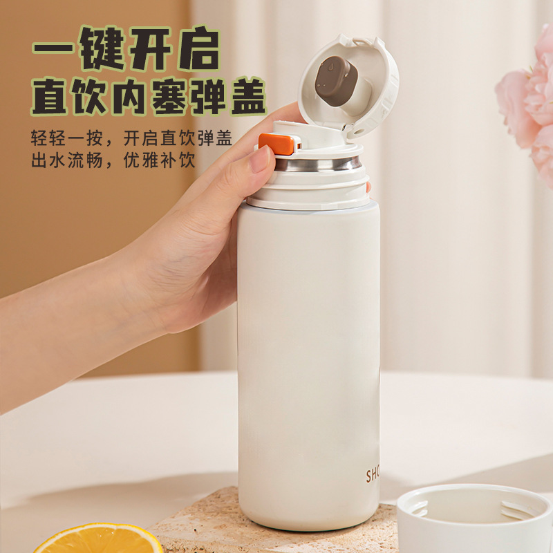 一键开盖保温杯男2025新款不锈钢水杯大容量保冷杯子车载运动水壶