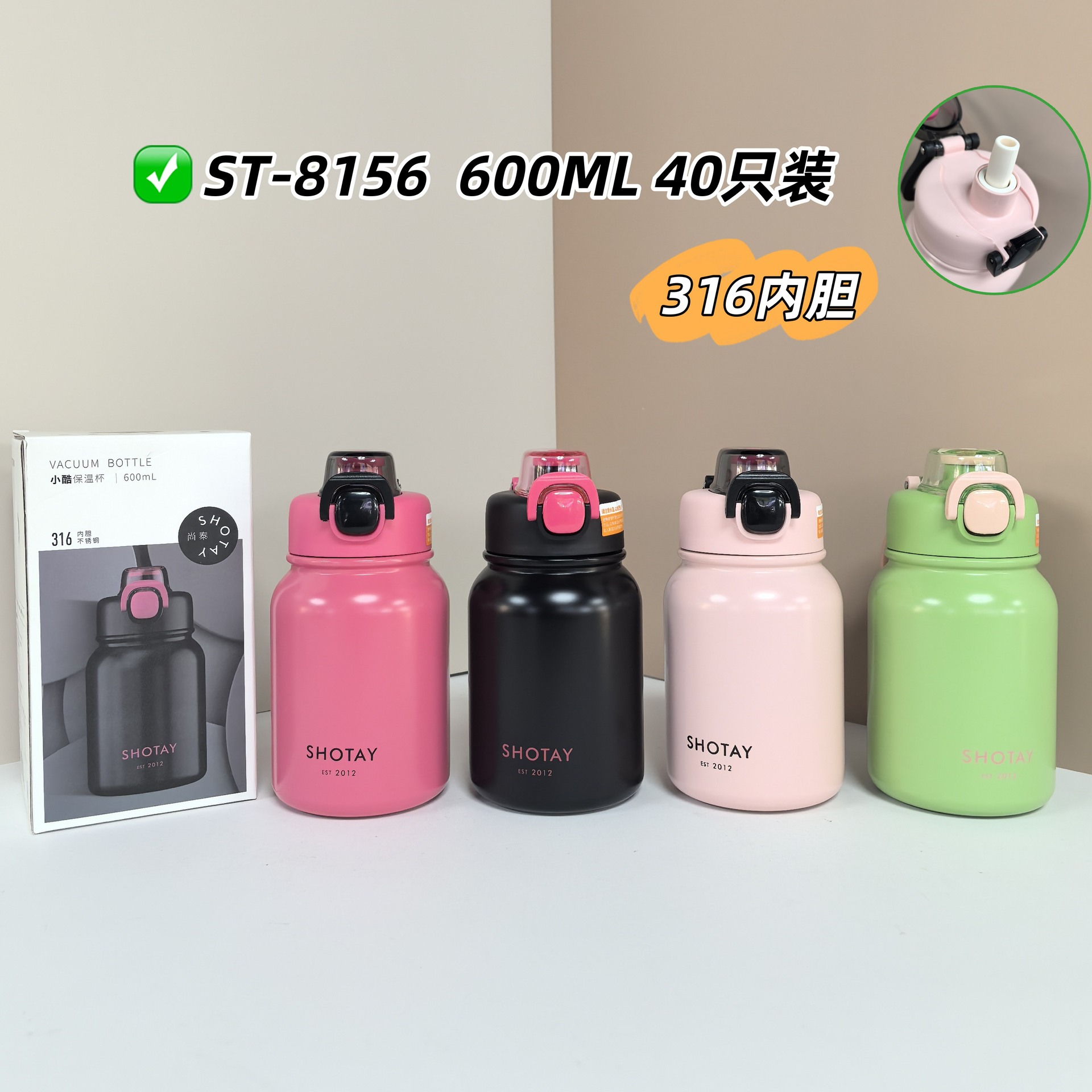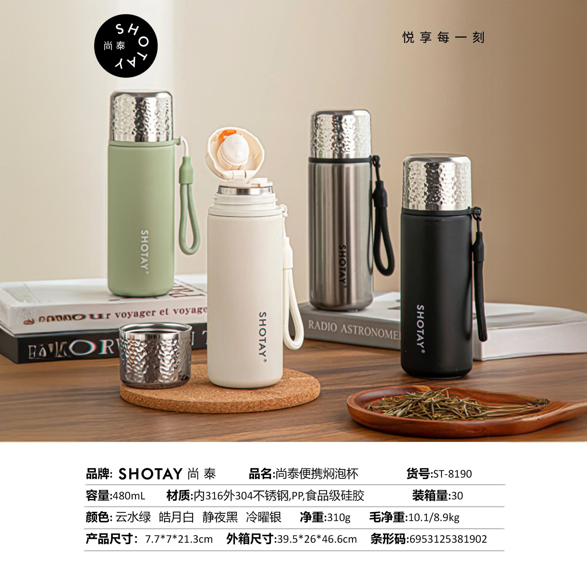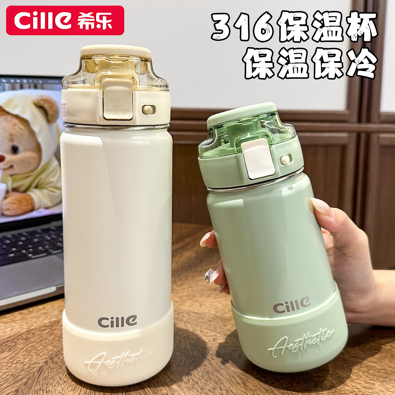 尚泰手提316不锈钢学生高颜值便携保温杯大容量吸管水杯