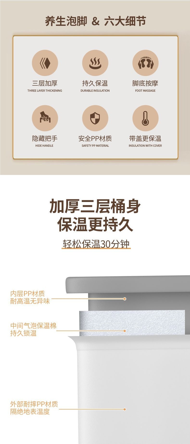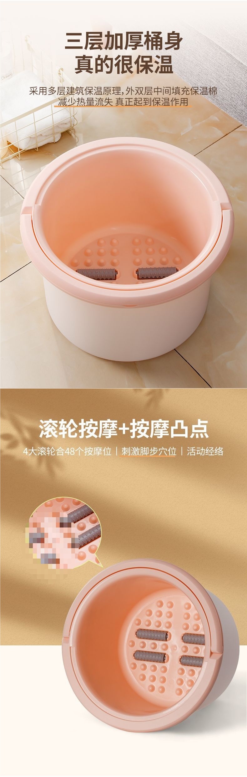 三层保温泡脚桶家用养生按摩洗脚盆过小腿儿童洗脚加厚泡脚盆