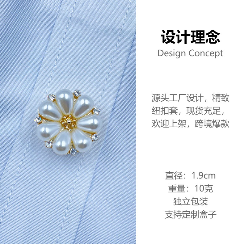 国境を越えたファッション韓国版真珠袖ボタン卸売り百合襟円形装飾ボタンシンプルなシャツ袖ボタン飾り女