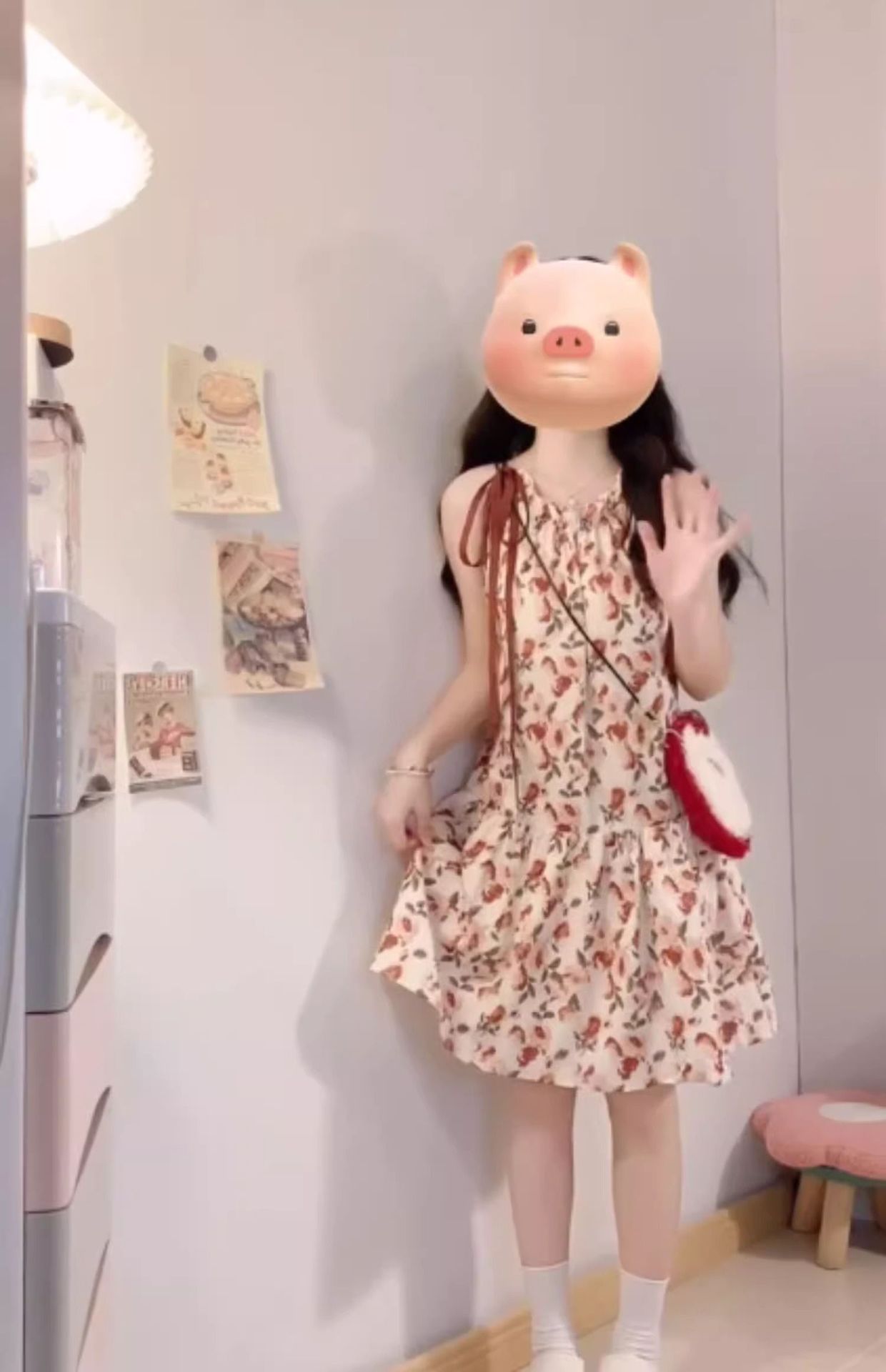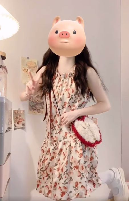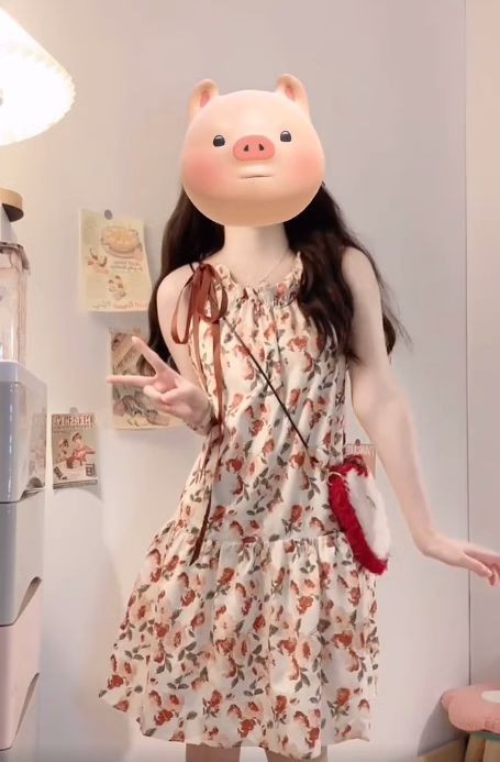 フランス風優しい風砕花首掛けワンピース女性2025夏小柄デザイン感減齢ノースリーブストラップスカート