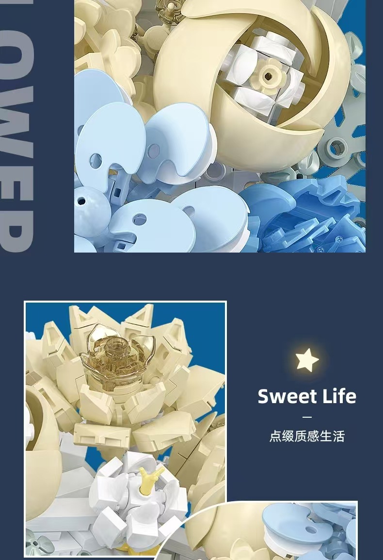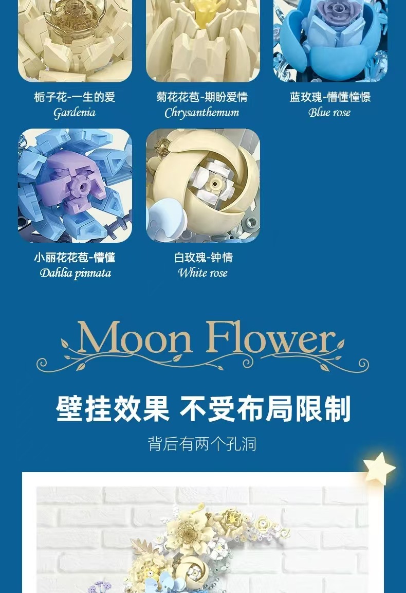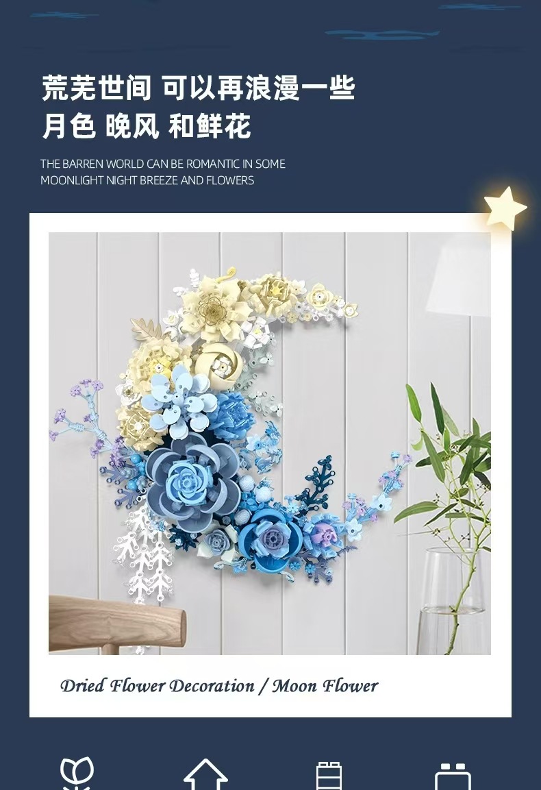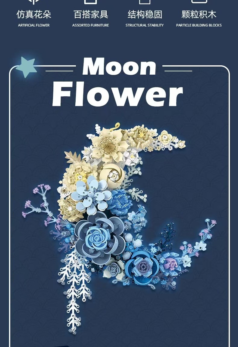 兼容乐高创意花朵月亮花拼搭小颗粒diy益智积木玩具生日礼物跨境