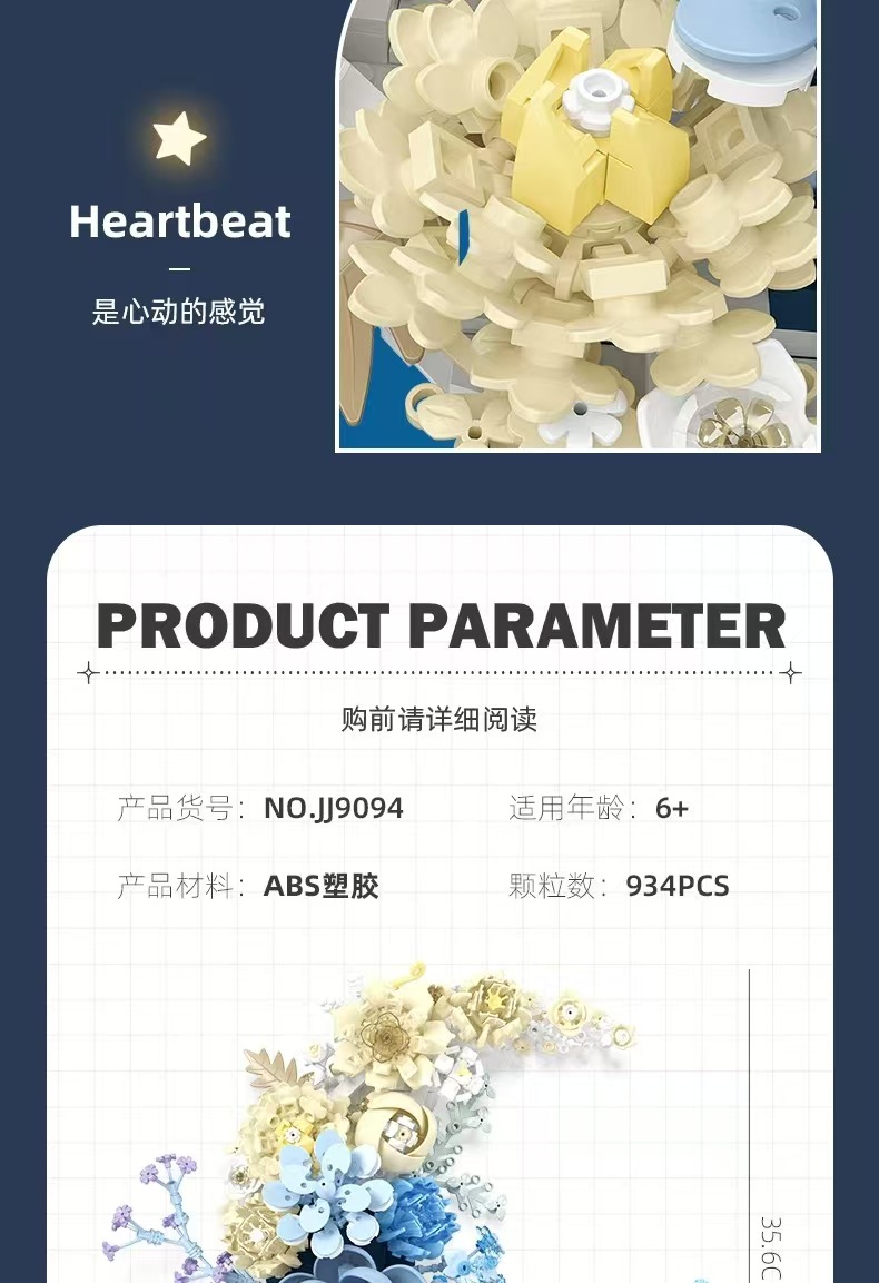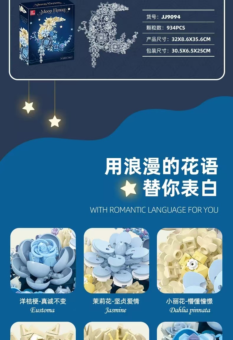 越境ジェスター新製品JJ9094月花子供向け知育組み立てブロック花飾り中国風花束モデル