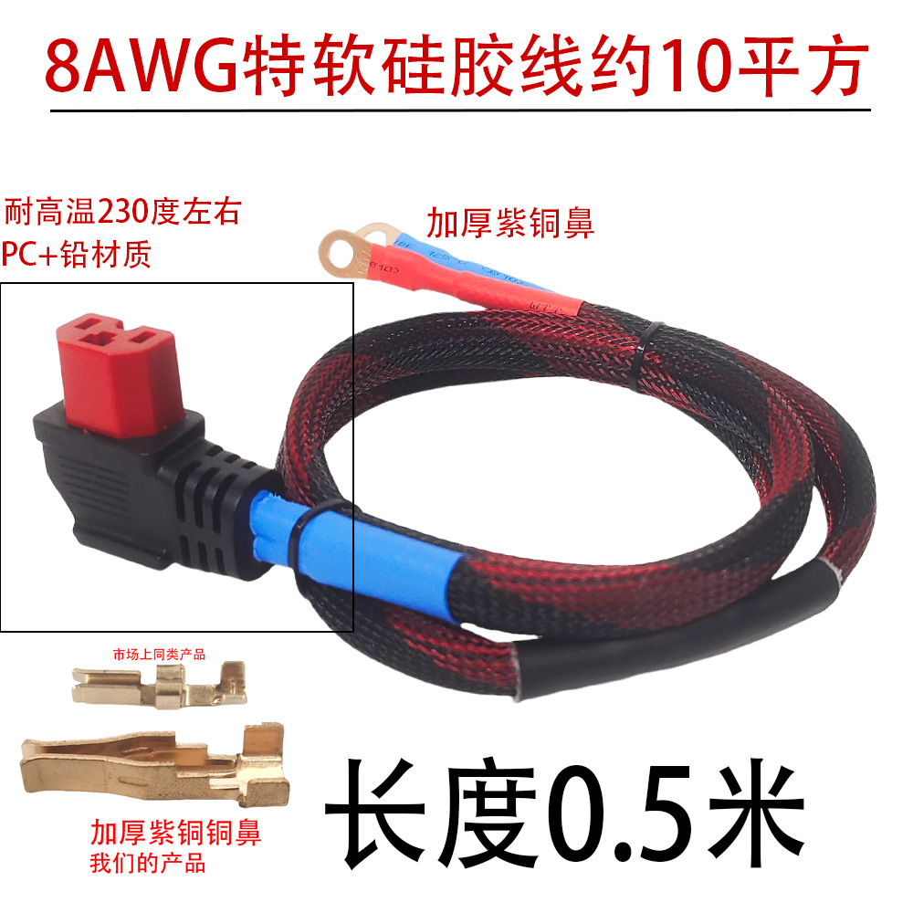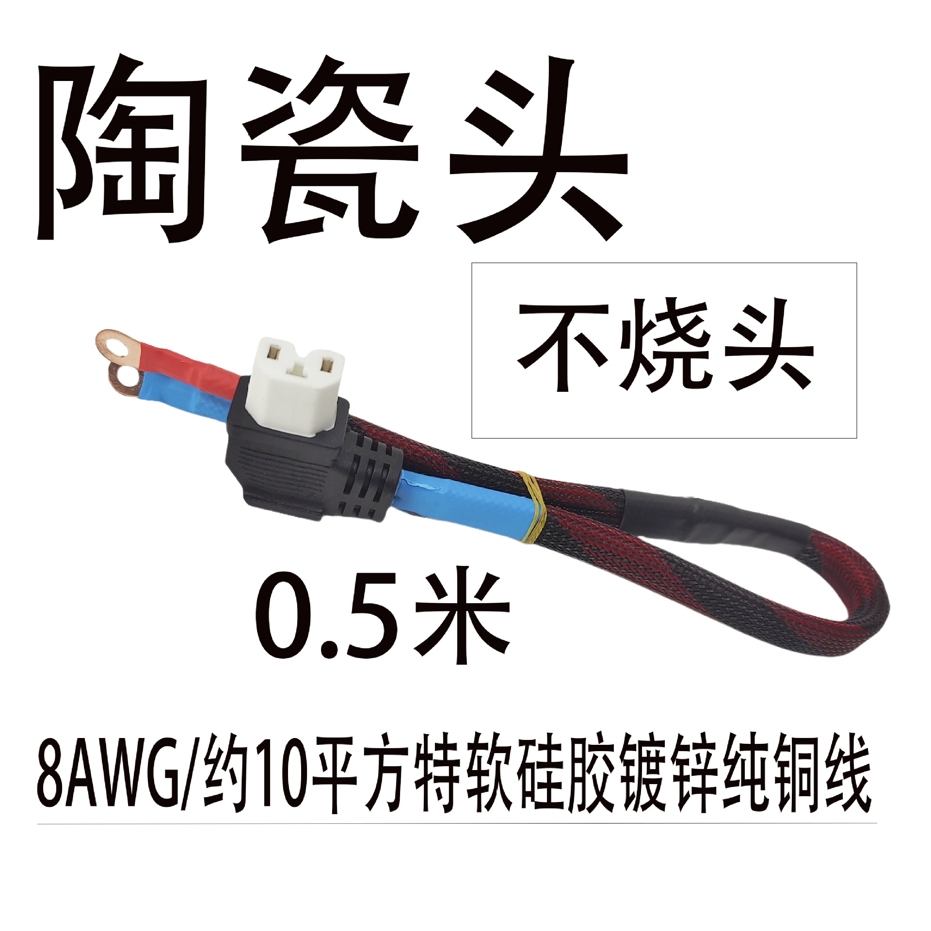 0.5米陶瓷头电动车弯头电源线8AWG特软硅胶纯铜电源线约10平方