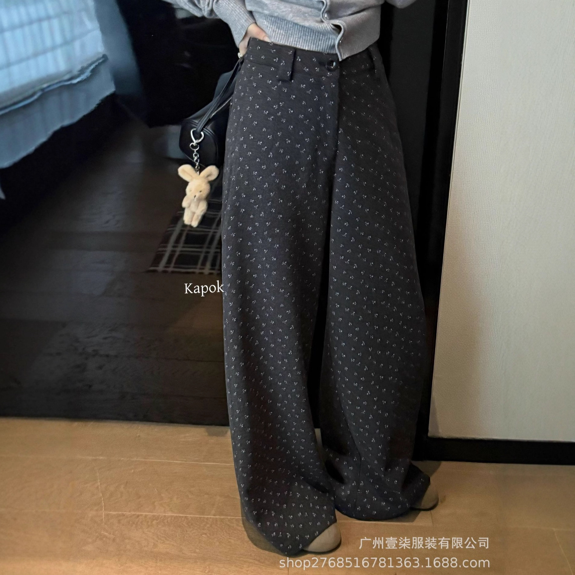十三行冬新款加厚磨毛碎花宽松百搭显瘦阔腿长裤韩系休闲裤女2色