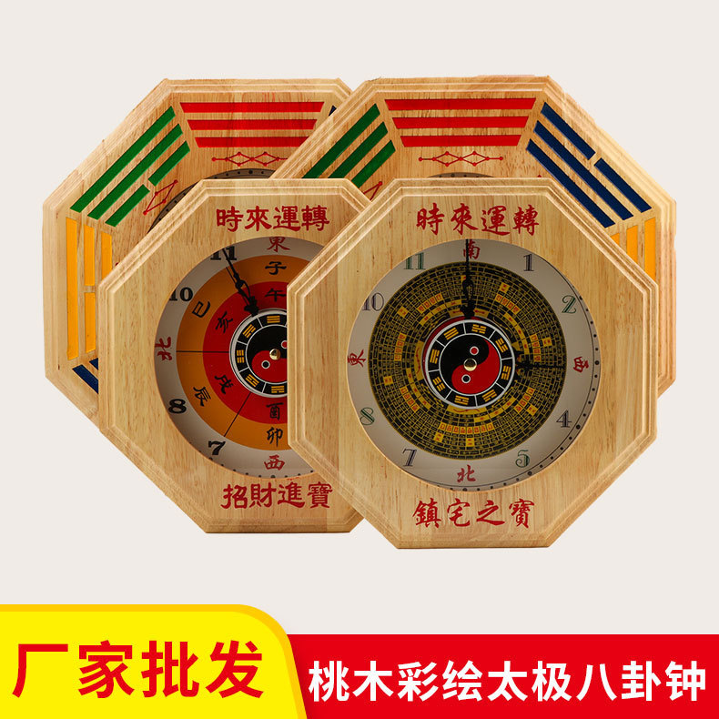 メーカー卸売木彫りピーチウッド八卦時計コンパス時計塗装太極拳八卦時計干支八卦時計吊り飾り