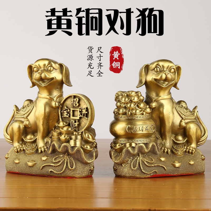 銅犬ペア真鍮装飾品干支銅犬宝の壺犬マネー犬リビングルームの家の装飾