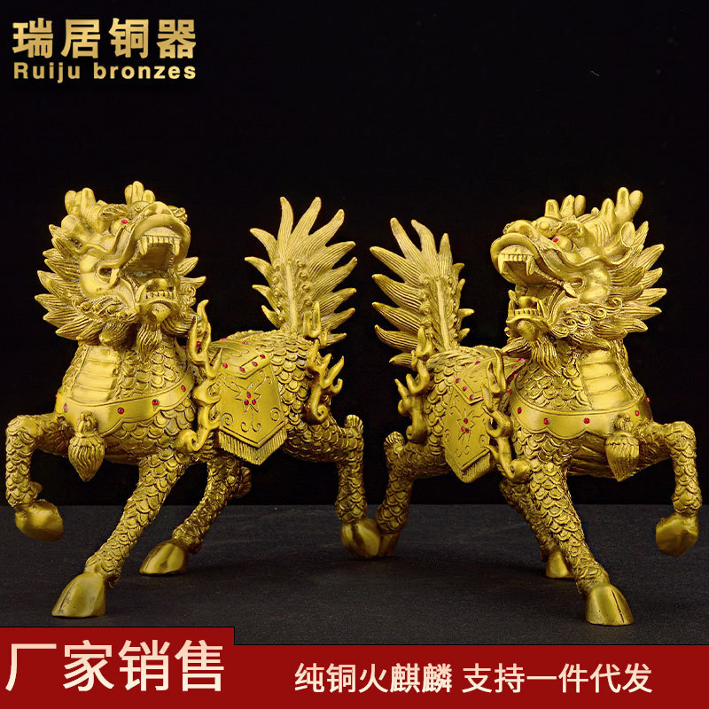 瑞居金属真鍮麒麟置物一対の真鍮火麒麟招財事務室客間装飾品工芸品