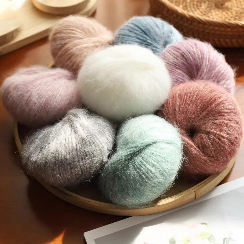 高比率モヘア、シルクモヘア、柔らかく肌に優しい、かぎ針編み、手編み糸、細糸、ヘアゴム、ショール