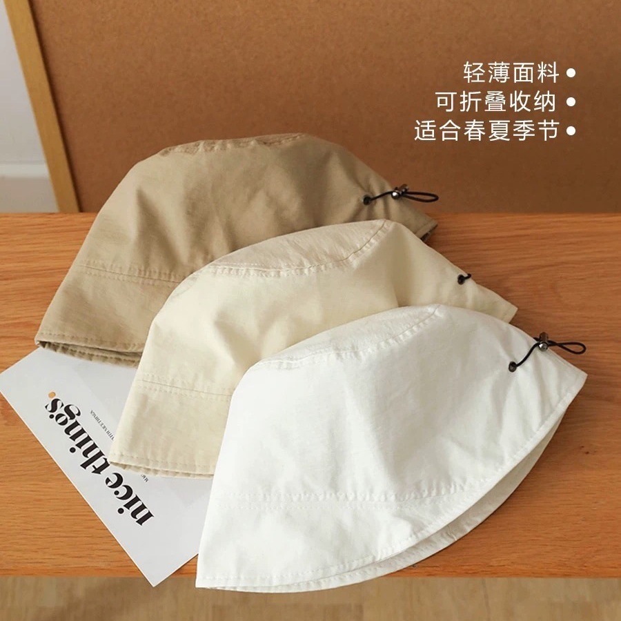 日系新款渔夫帽夏季薄款女折叠水桶帽卡其色防晒遮阳显脸小盆帽