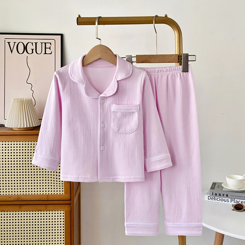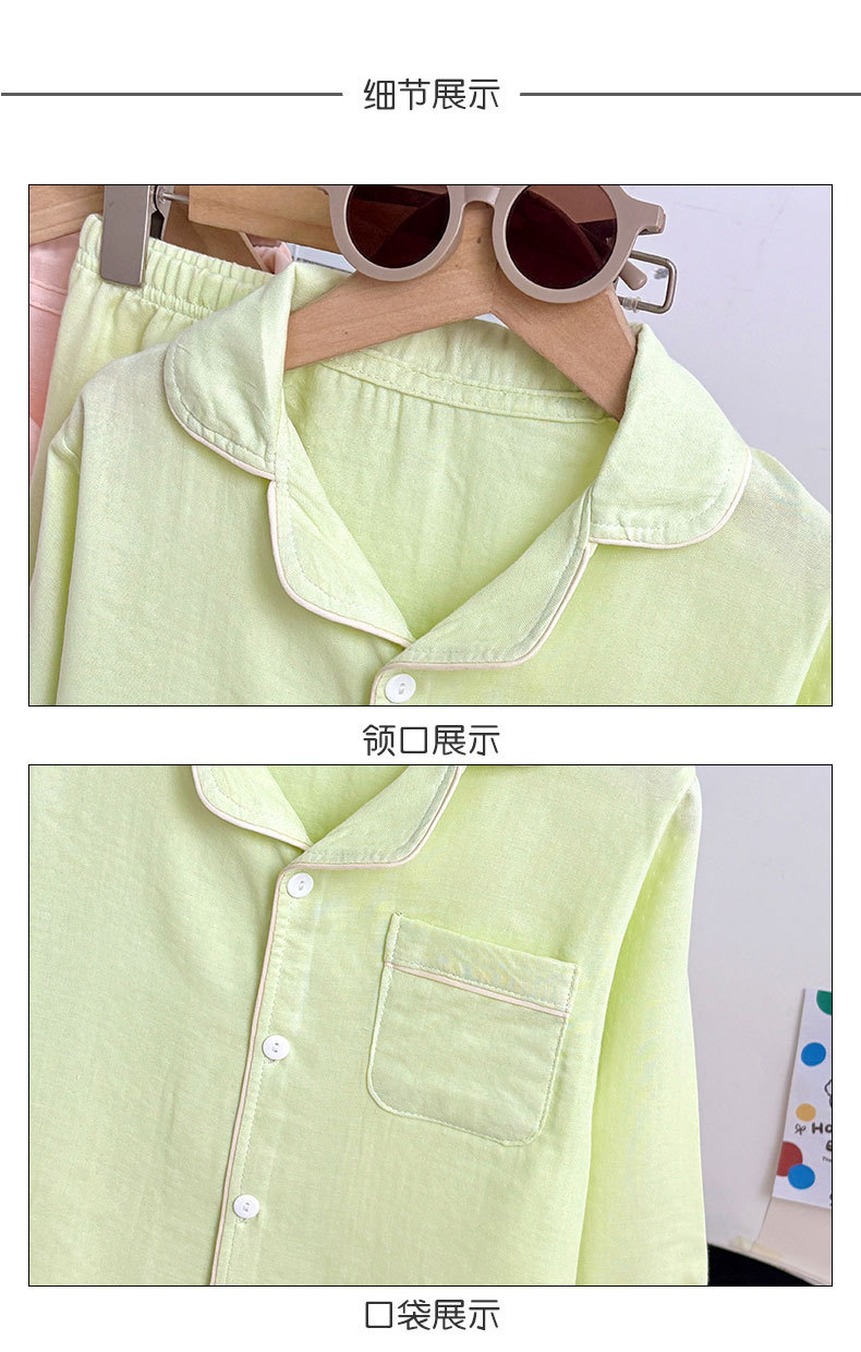 新しい子供パジャマ竹綿セット夏の薄い家庭服襟付きカーディガン男女児童長袖エアコン服