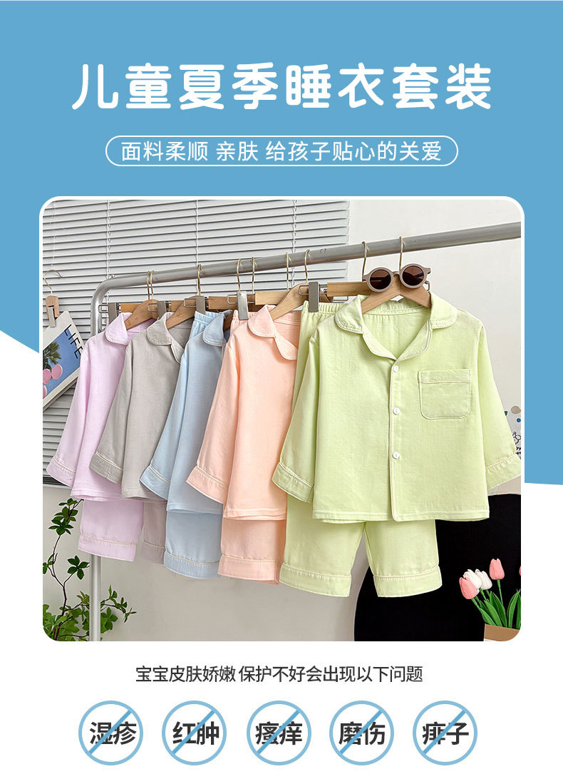 子供用パジャマセット薄手夏パンツ半袖無痕男女子供7分ズボン家庭用エアコン服