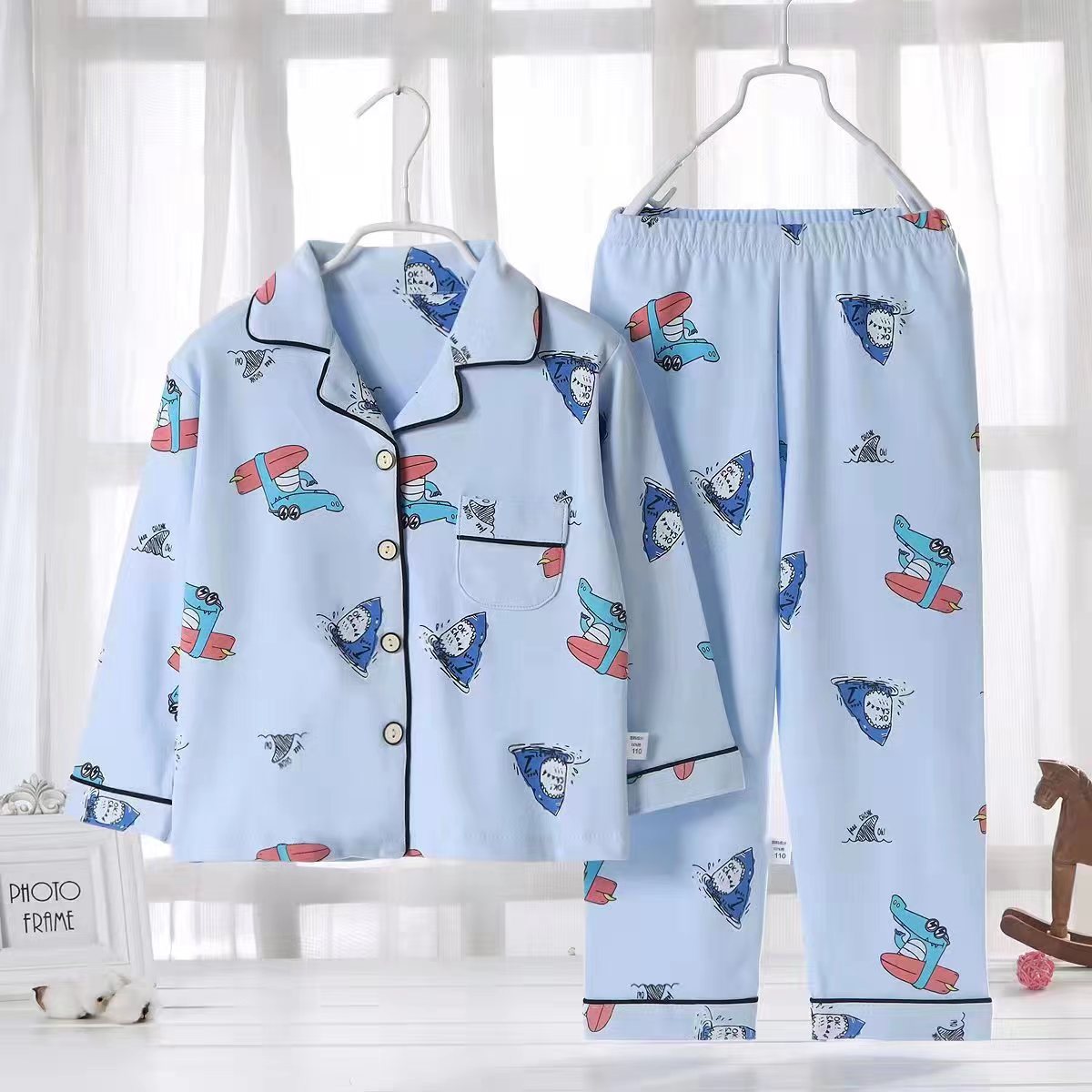 100纯棉儿童春秋睡衣套装女童男女家居服宝宝长袖两件套全棉