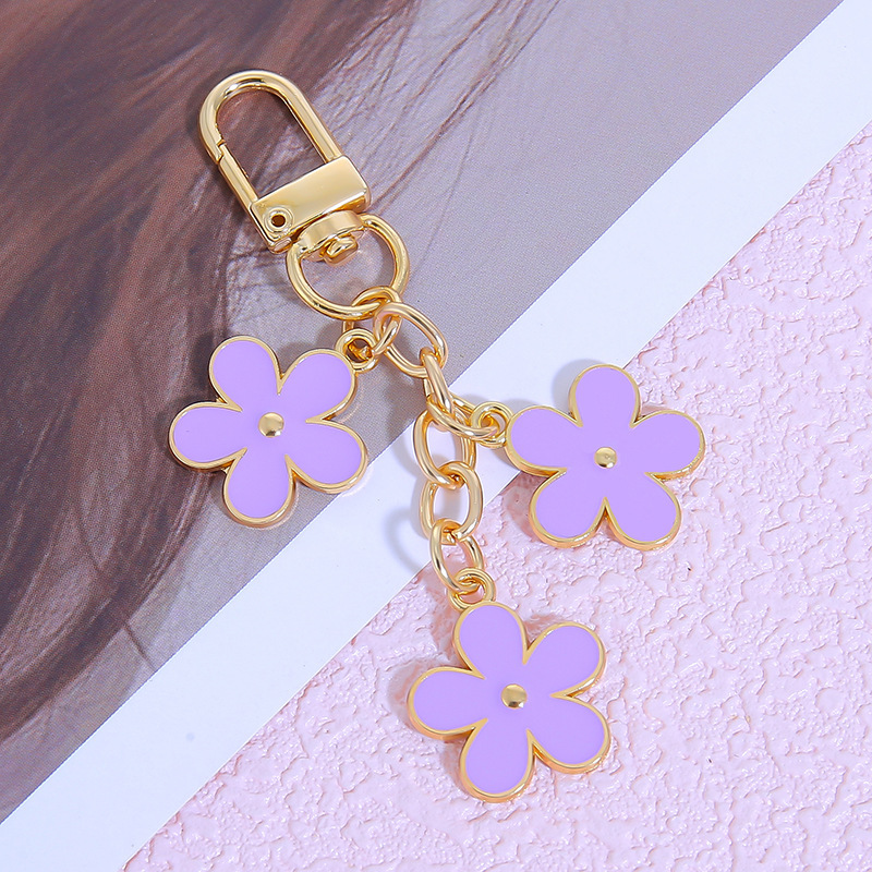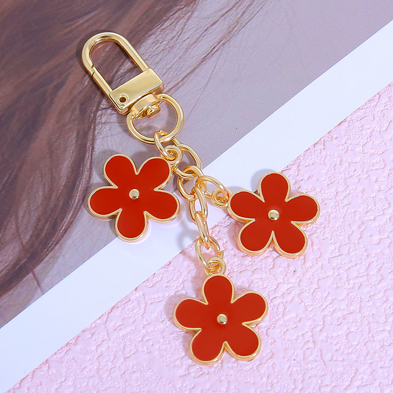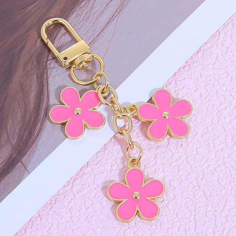 新款ins彩色花朵钥匙扣挂件 创意diy合金双面小花耳机套包包装饰