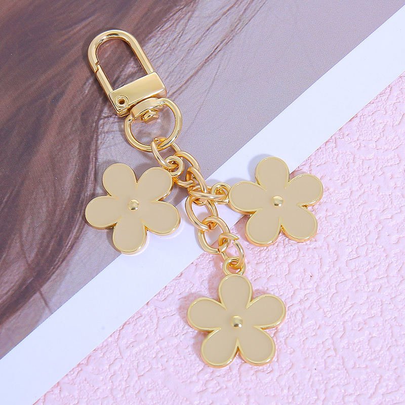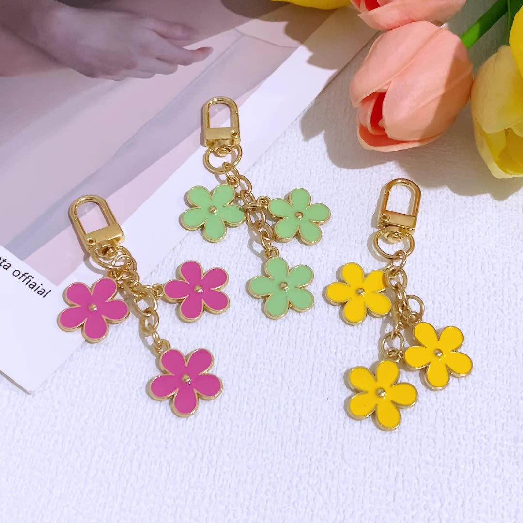 新品insカラー花キーホルダーストラップクリエイティブdiy合金両面小花イヤホンカバー装飾品