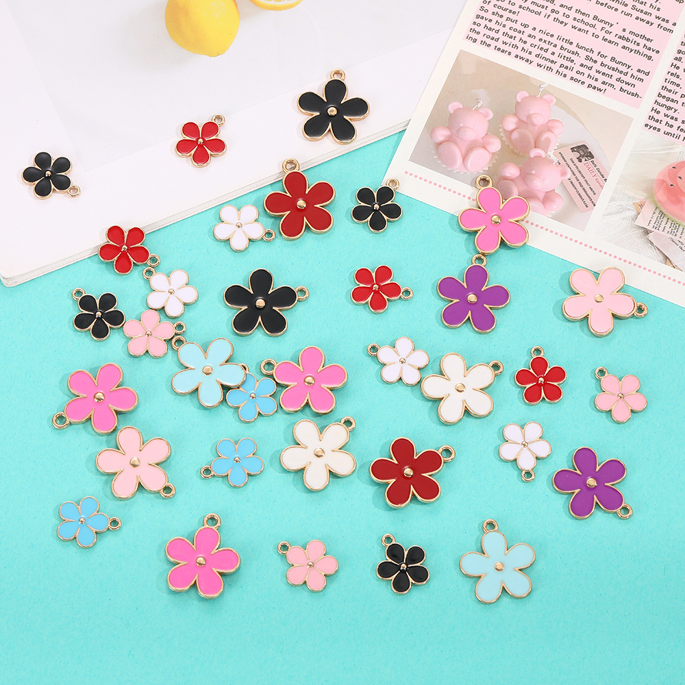 韩式合金滴油配件双面花朵雏菊五瓣花吊坠耳饰发饰手链材料饰品