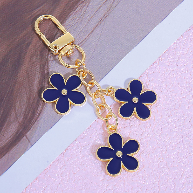 クロスボーダーinsカラー花キーホルダーストラップクリエイティブdiy合金両面小花イヤホンカバー装飾