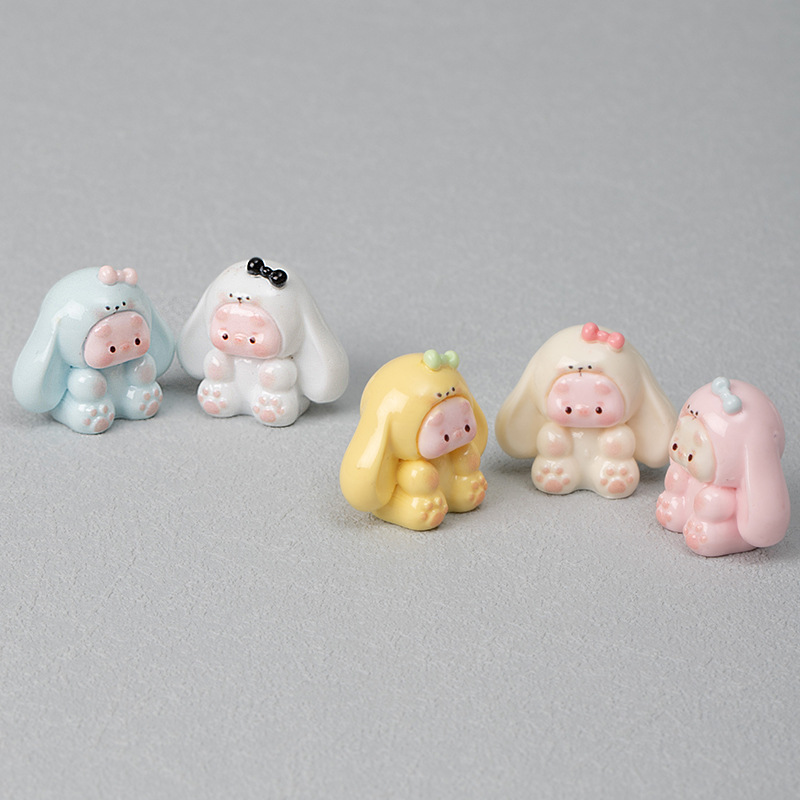 立体的な子豚と大きな耳の犬のかわいい手作り装飾、キュートでクリエイティブなデスクトップや車載用の樹脂製小物工芸品