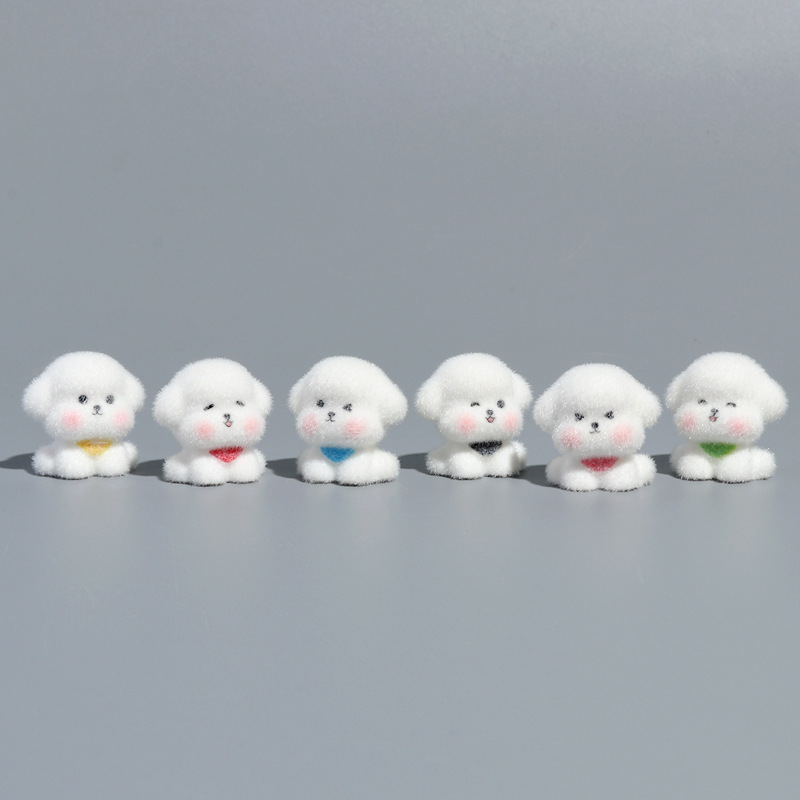 植绒树脂小白狗微景观萌粒桌面车载装饰小摆件工艺品高级感小众