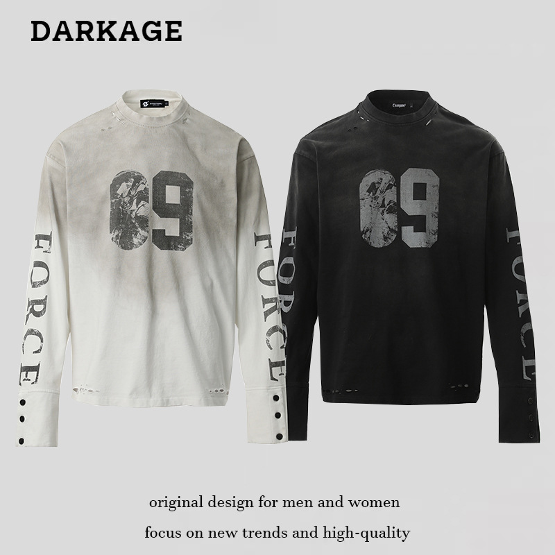 アメリカンレトロなスプレー汚れ加工デザインの長袖Tシャツ、男女兼用、トレンドブランドのゆったりハンサムトップス