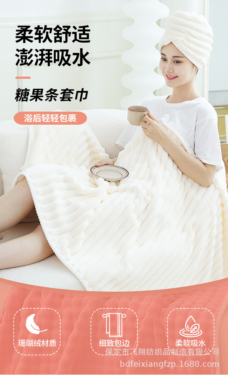 キャンディストリップバスタオル 厚手ビーチタオル 大人用 家庭用 吸水性バスタオル サンゴベルベット素材 超吸水