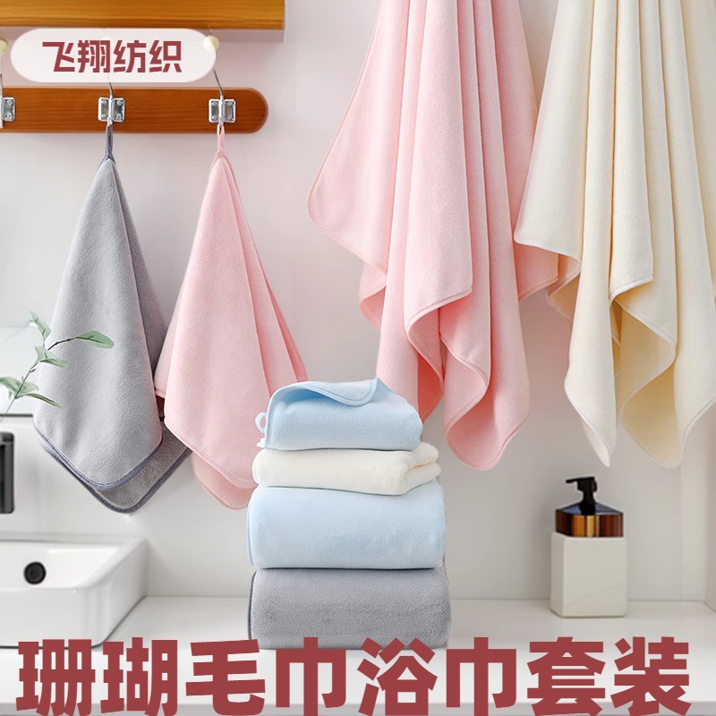 クロスボーダー無地コーラルベルベットタオル、吸水タオル、ヘッドタオル、洗顔タオル、特大厚手速乾バスタオル、カスタムウォームベルベット