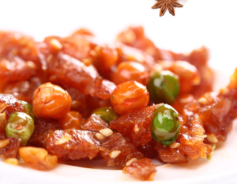 嘉龍全粒粉スパイシーストリップ、スパイシービーフ腱、青豆、子供の頃の懐かしいスパイシースライス、食欲を満たす豆製品、カジュアルスナック