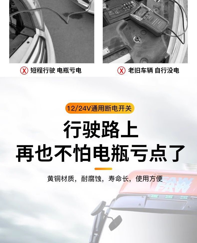 汽车电瓶断电开关小轿车货车电源闸刀开关改装黄铜通用纯铜防漏电