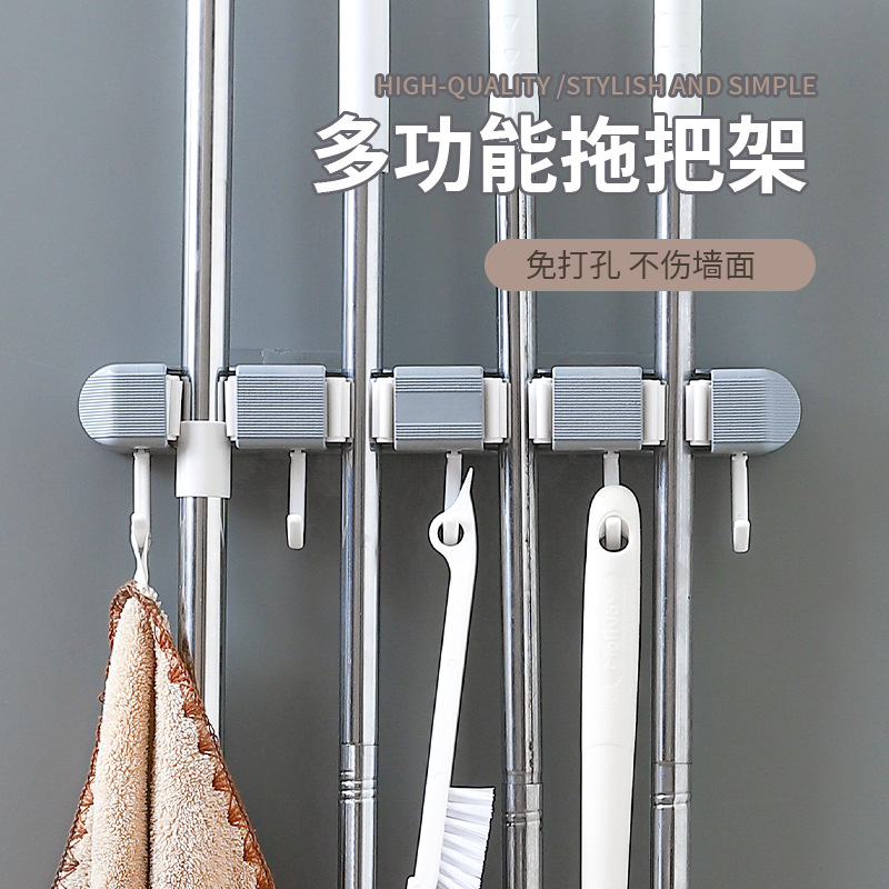 免打孔强力联排拖把夹挂钩架子无痕贴拖把挂架壁挂拖把卡扣固定器