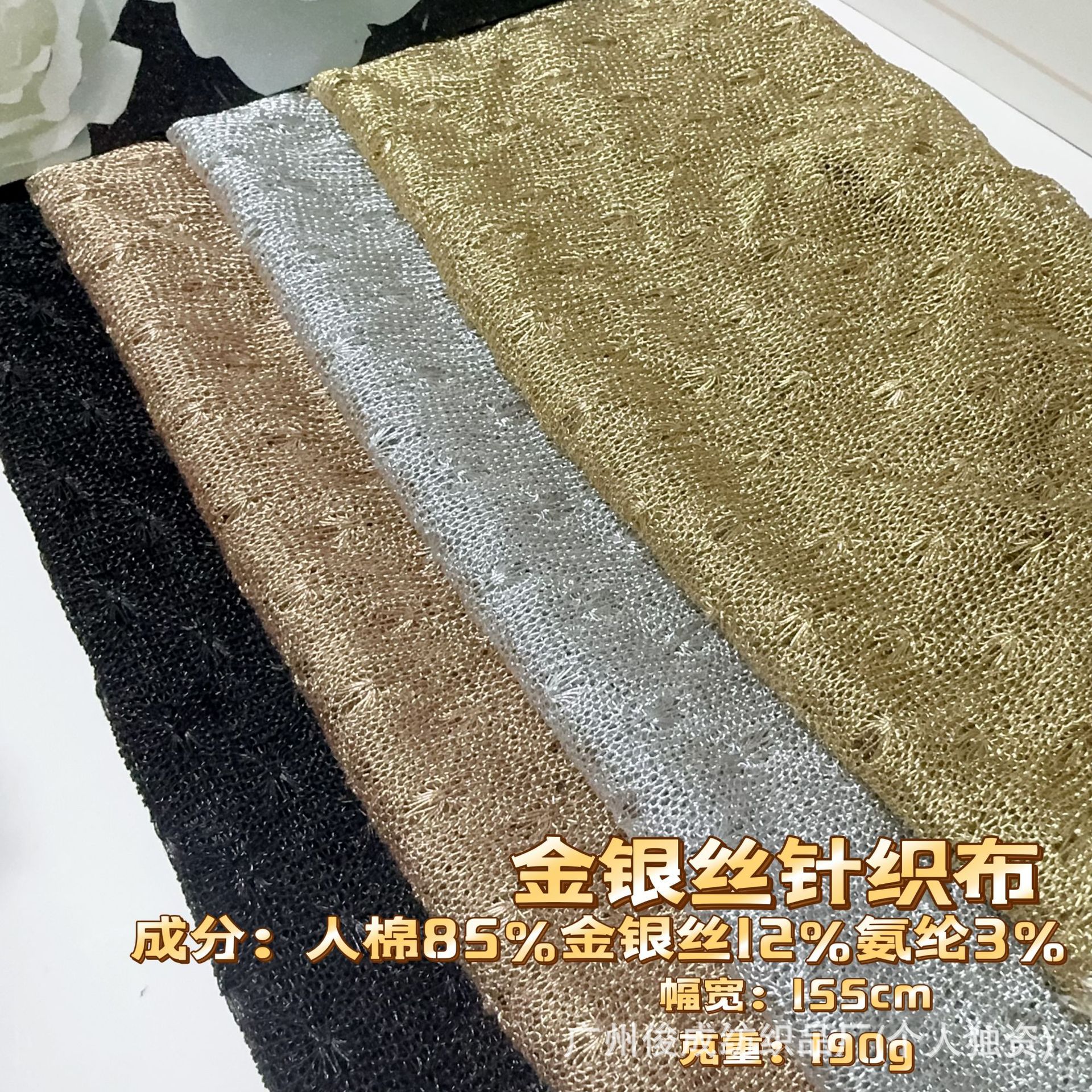 潮流金属质感镂空垂坠金银丝面料连衣裙设计师布料肌理时尚针织布