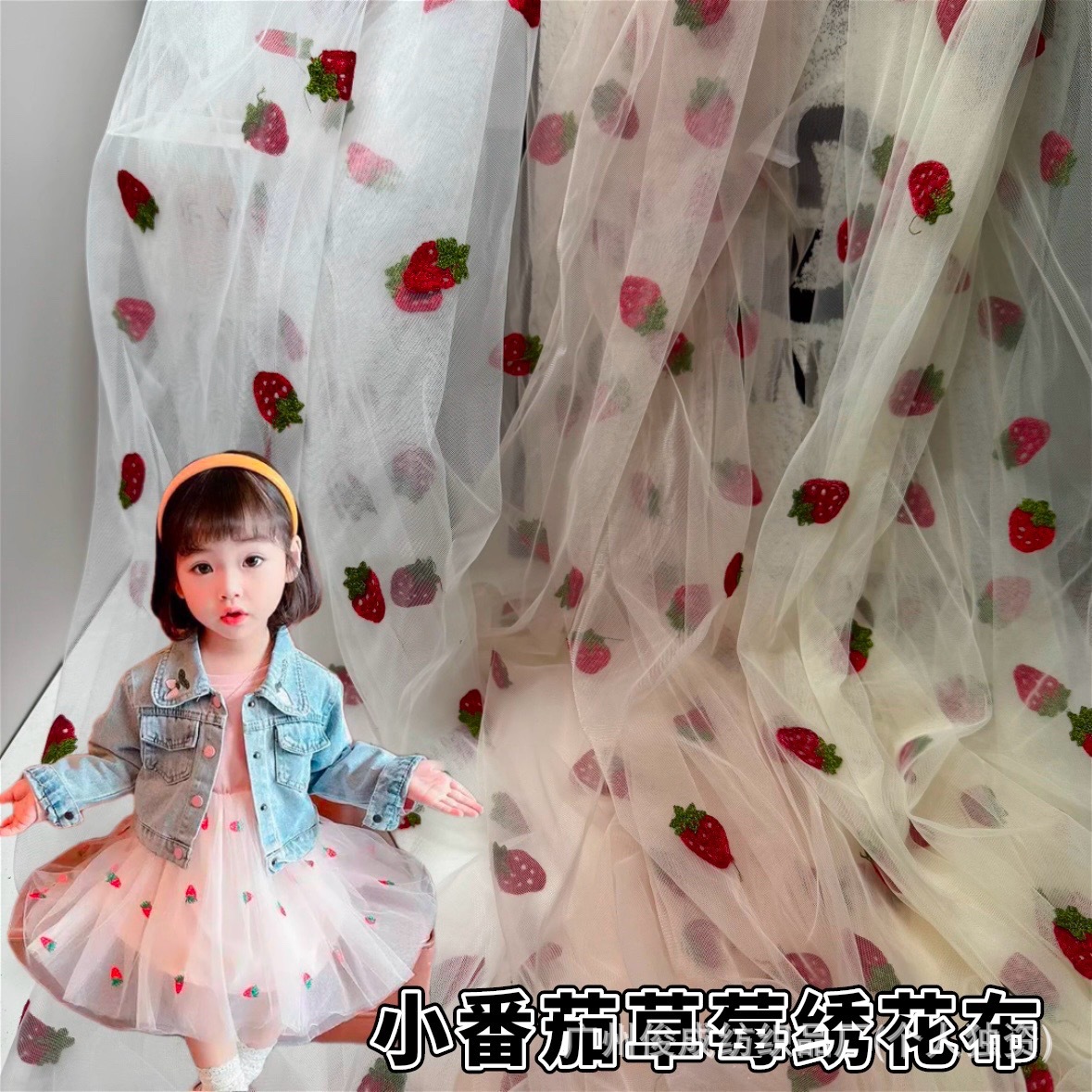 新商品の小さいトマトのイチゴの網のガーゼの刺繍の生地のワンピースの子供服のガーゼのスカートの手作りのdiyカーテンの装飾の布