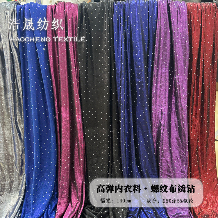 烫钻螺纹针织布弹力亲肤打底衫欧美时装内衣连衣裙闪亮装饰面料