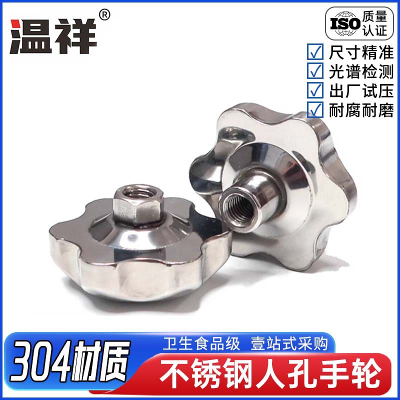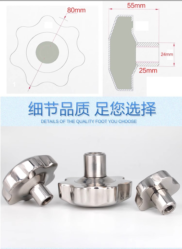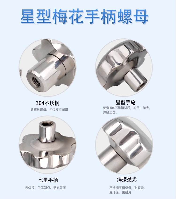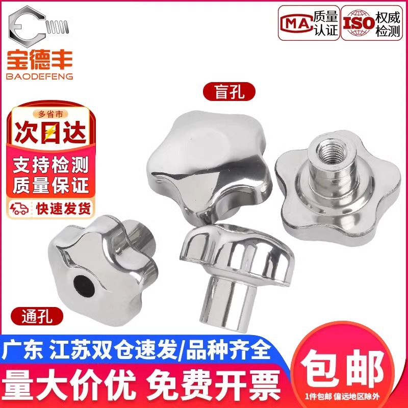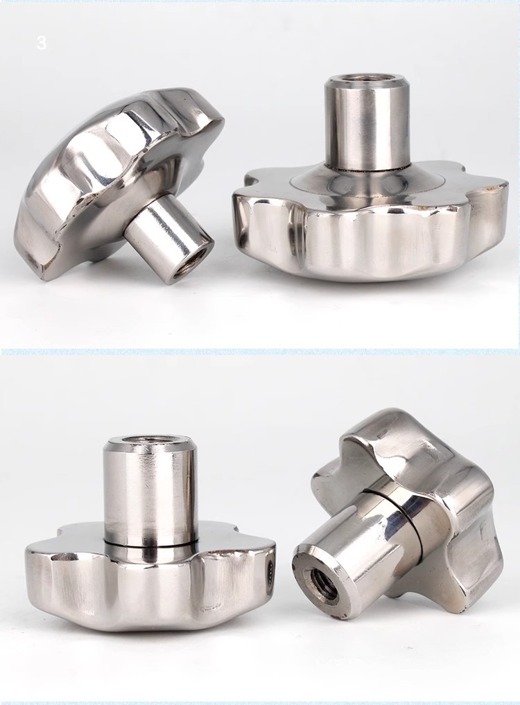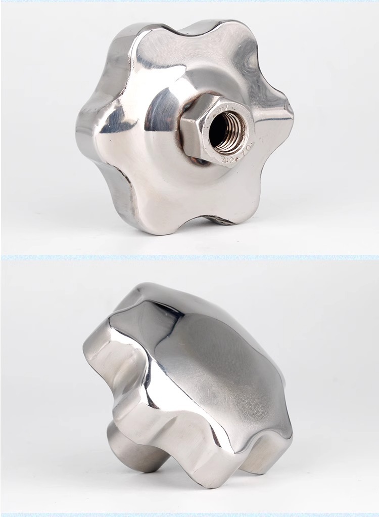 不锈钢梅花手柄空心手拧螺母盲孔手轮星型把手镜面机床六角圆批发