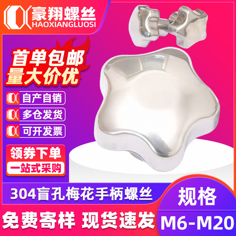 304 ステンレス鋼梅の花ハンドルナット、ハンドルナット、星型ハンドルノブ、ロックネジキャップ、工場直販