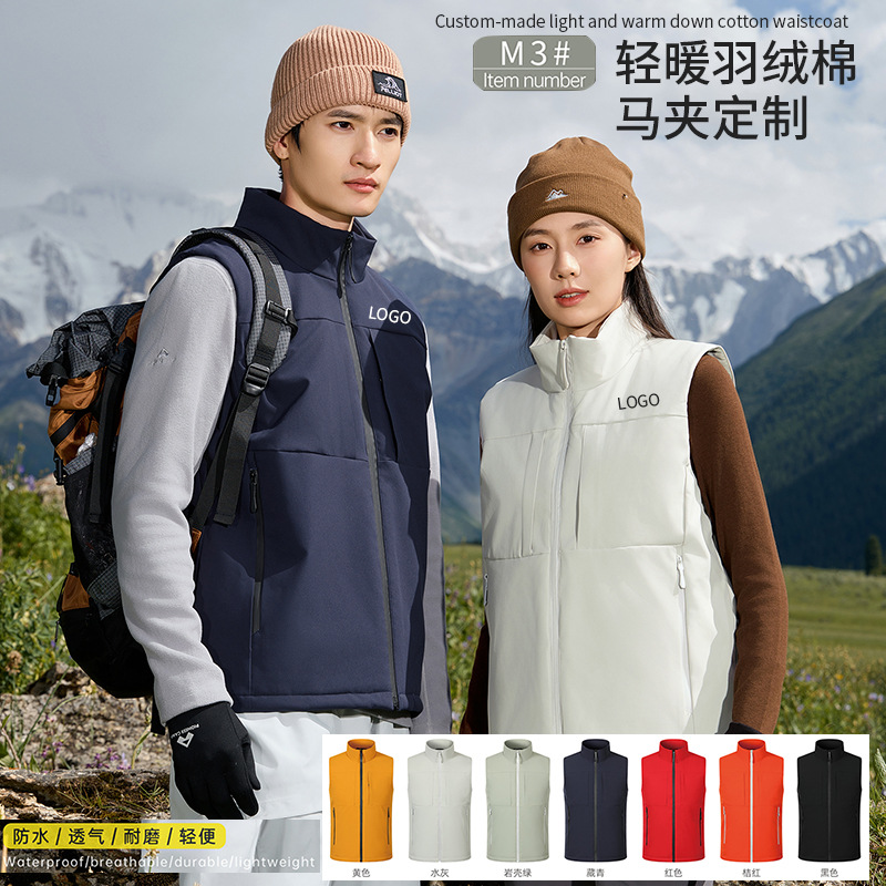 冬季跨境男士羽绒背心保暖工作服加绒马甲外穿男式羽绒棉马夹定制