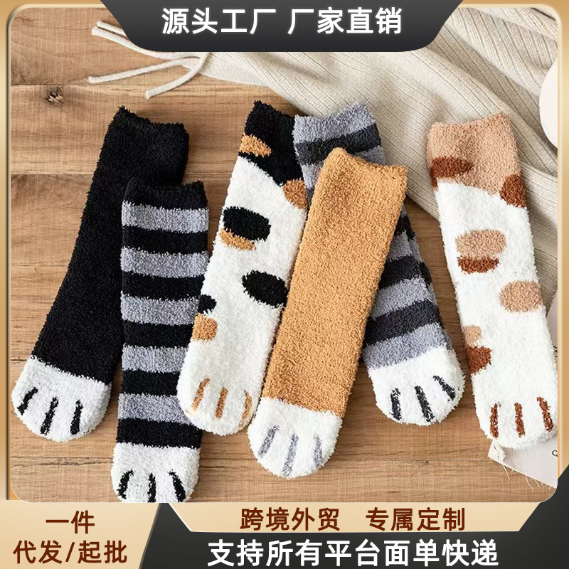 ふわふわソックス レディース コーラルフリース 秋冬 厚手 保温 ミドル丈ソックス フロアソックス 猫の爪 可愛い ホームウェア 多用途 工場直送