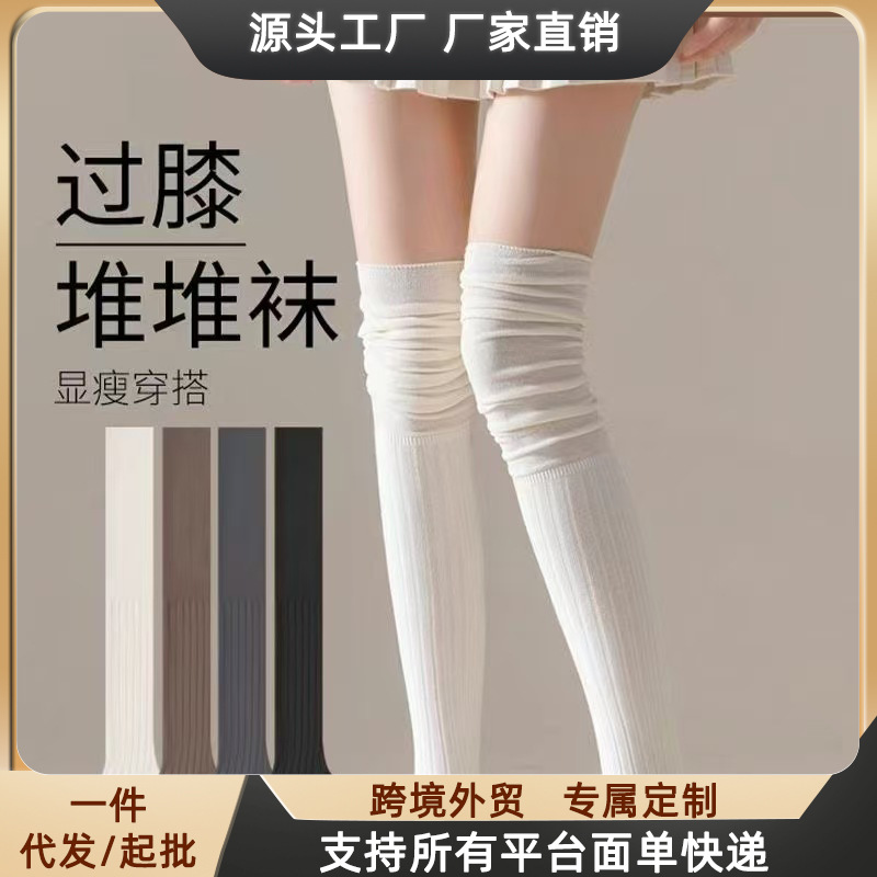 春夏のオーバーニーソックス、レディース春ロングソックス、JK白太ももブーツ、継ぎ接ぎニーストッキング