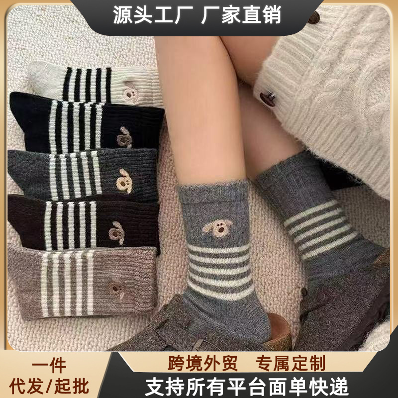 春秋冬季爱心袜子女中筒透气百搭高颜值日系女士可爱中筒新款批发