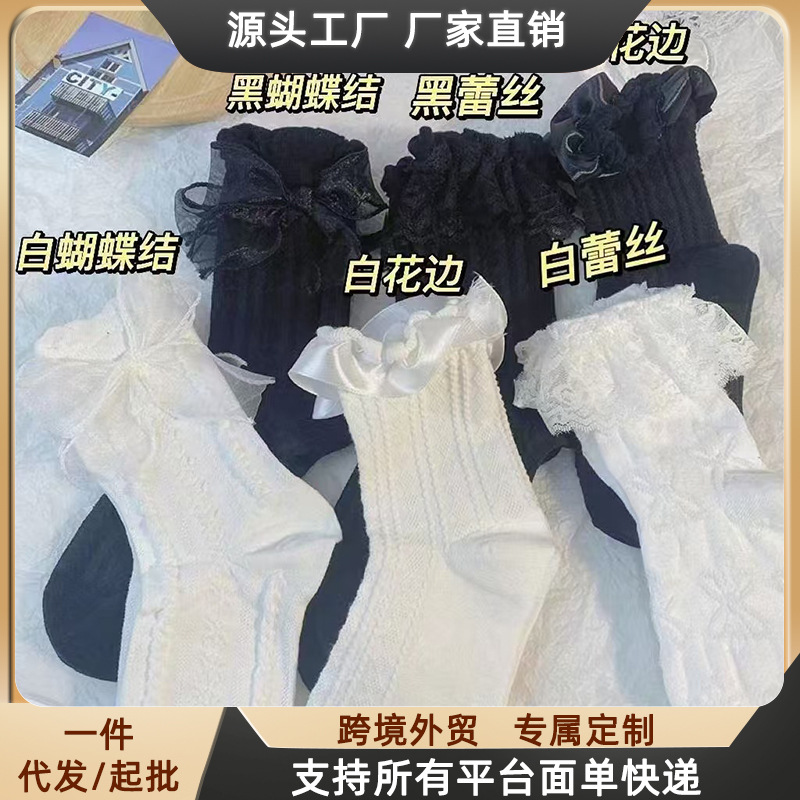 女性用夏用ミドル丈ソックス、工場直販、可愛い和風、蝶結び、レース、プリンセスソックス、多用途で流行